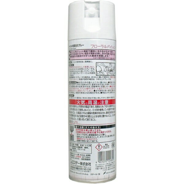 エステー家庭用放射線測定器 エアカウンターSエステー ドライペット スピード吸湿 くつ用 150g×2個(1足分)入エステー 備長炭ドライペット くつ用 2足分エステー ドライペット コンパクト 容器 170gエステー ドライペット 引き出し・衣装ケース用(衣類皮製品) お徳用 12シート入エステー 消臭力クルマ用 新車復活消臭剤 ミントの香り 250mLエステー 消臭力クルマ用 新車復活消臭剤 ソープの香り 250mLエステー トイレの消臭力 フローラルパッション 400mLエステー 消臭力クルマ用 新車復活消臭剤 無香料 250mLエステー トイレの消臭力 炭と白檀 400mL【エステー トイレの消臭力スプレー フローラルパッション 330mL】広告文責(有)イースクエアTEL:0120-532-772エステー株式会社個装サイズ:58X216X58mm個装重量:約300g内容量:330mL製造国:日本【発売元:エステー】【品名】消臭・芳香剤【用途】トイレ用(トイレの使用前後、清掃後に)【成分】植物抽出消臭剤、香料、除菌剤、エタノール【使用期間/使用回数】1日2〜3回スプレーで約1〜1.5ヵ月【使用方法】※缶を横向きや逆さまにして使用しない。