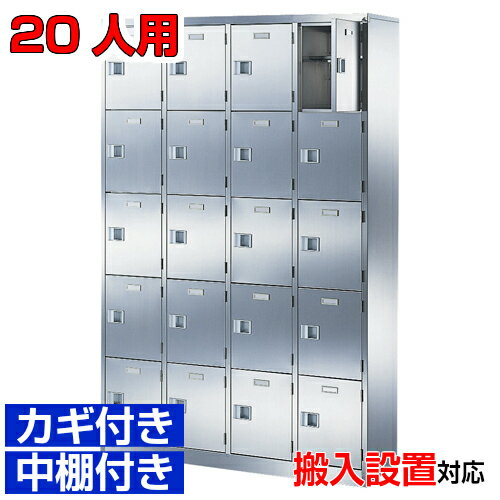 ステンレスシューズボックス 業務用玄関収納 実質 扉付き サビに強い! 国産品 厨房・食品工場・研究室などに 中棚付き 4列5段 20人用 W1060 病院 BRI