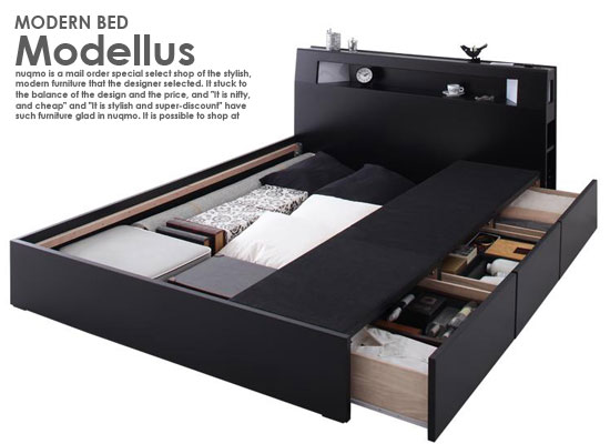 収納付きベッド Modellus【モデラス】プレミアムポケットコイルマットレス付 ダブル